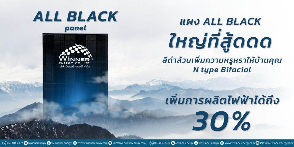 All Black solar panels by Winner Energy represent the pinnacle of solar technology and modern aesthetics. With a full-black design and the largest panel size in Thailand, they enhance the elegance of any home while delivering up to 30% more energy output compared to standard panels—thanks to Tier 1-level technology. ✨ Key Features of All […]