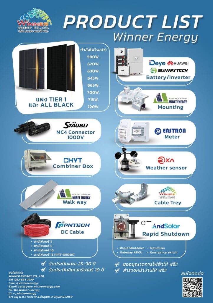 Why pay more when you can get the same international quality solar cables at 20% lower price? Winner Energy is the exclusive distributor of PNTech Solar Cables in Thailand — delivering superior performance, safety, and efficiency to your solar power system. 📦 PNTech Solar Cable Prices 🔹 4 mm²: 17.25 THB/meter 🔹 6 mm²: 23.25 […]