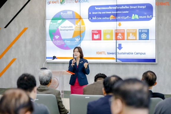 Associate Professor Dr. Komsan Maleesee, President of King Mongkut’s Institute of Technology Ladkrabang (KMITL), stated that the institute prioritizes policies that drive progress toward becoming a Sustainable Campus, serving as a model Green, Smart, and Digital University for both the public and private sectors. This approach aims to guide efficient and sustainable energy management (Sustainable University) and set a benchmark for the nation.
